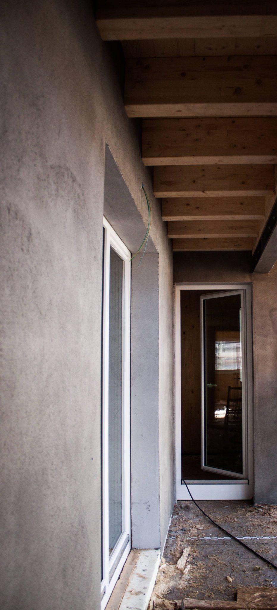 Le pareti in legno sono state rivestite internamente con delle contropareti in cartongesso, all’interno delle quali cono stati interposti gli impianti idrici ed elettrici ed uno strato isolante per aumentare l’isolamento termo-acustico degli ambienti. La stessa tecnica costruttiva è stata applicata per le pareti interne non portanti, che sfruttano la sostenibilità del sistema a secco in cartongesso.